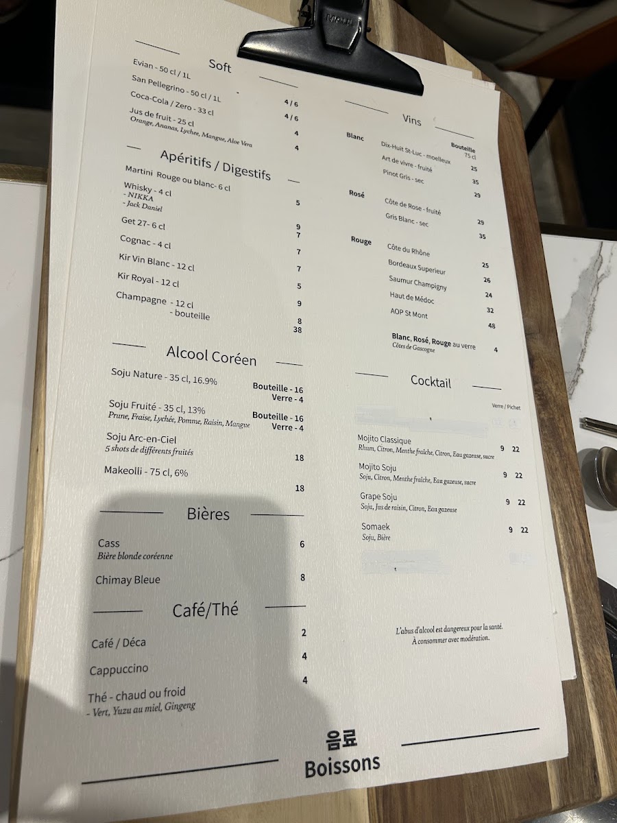 The food options are complemented by light starters, which some customers have noted are available but tend to be served in small portions. While a detailed breakdown of beverages or desserts is not provided, typical Korean restaurant menus often include a selection of non-alcoholic drinks and traditional Korean beverages.